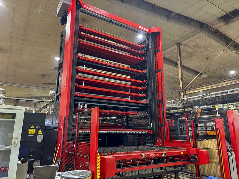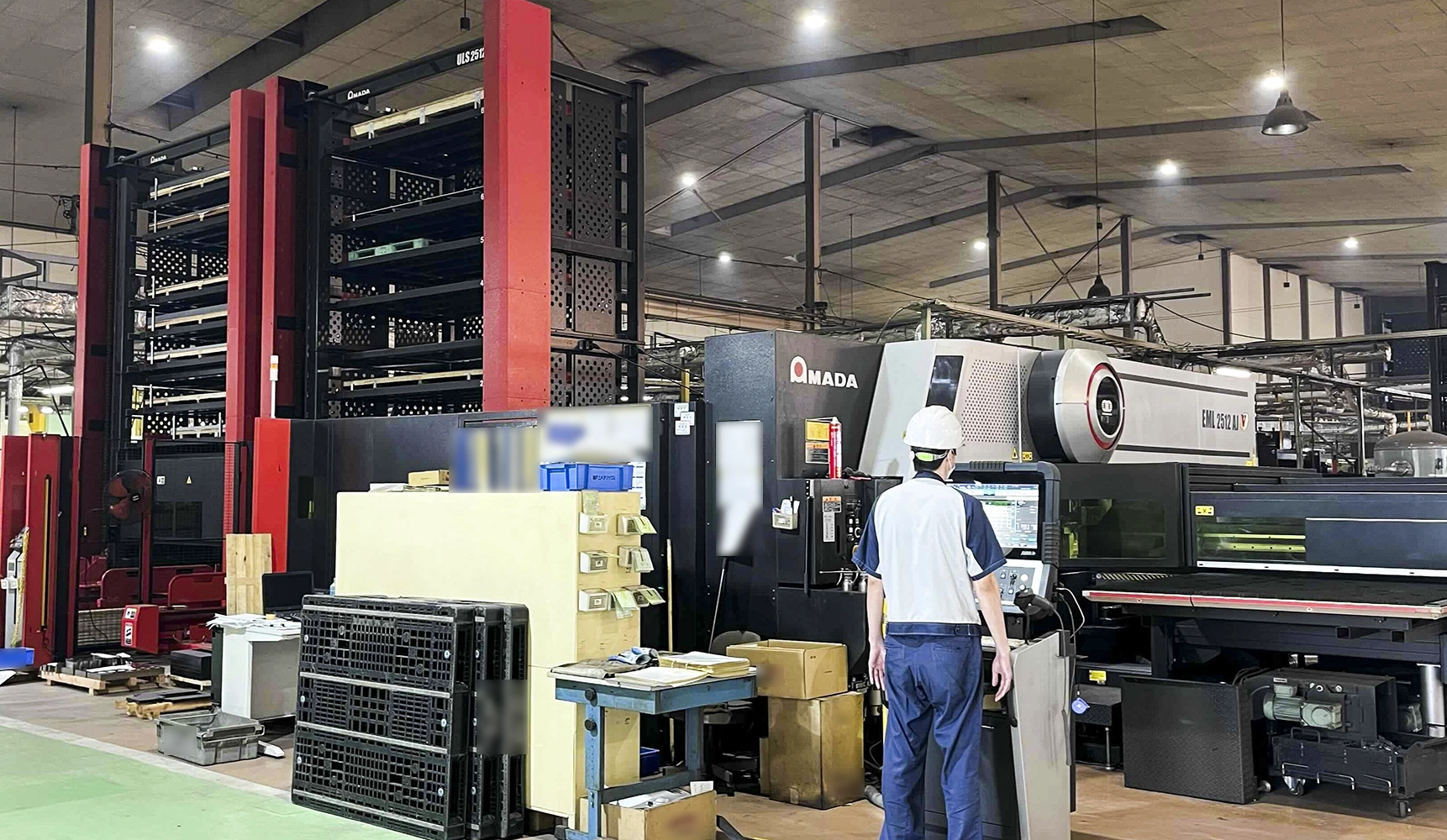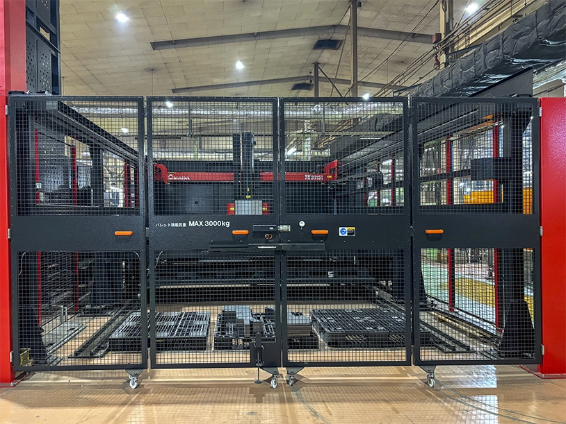 レーザー加工機やタレットパンチプレスにはパレットチェンジャーを装備し、スピーディーに材料を供給するとともに無人運転にも対応可能です。