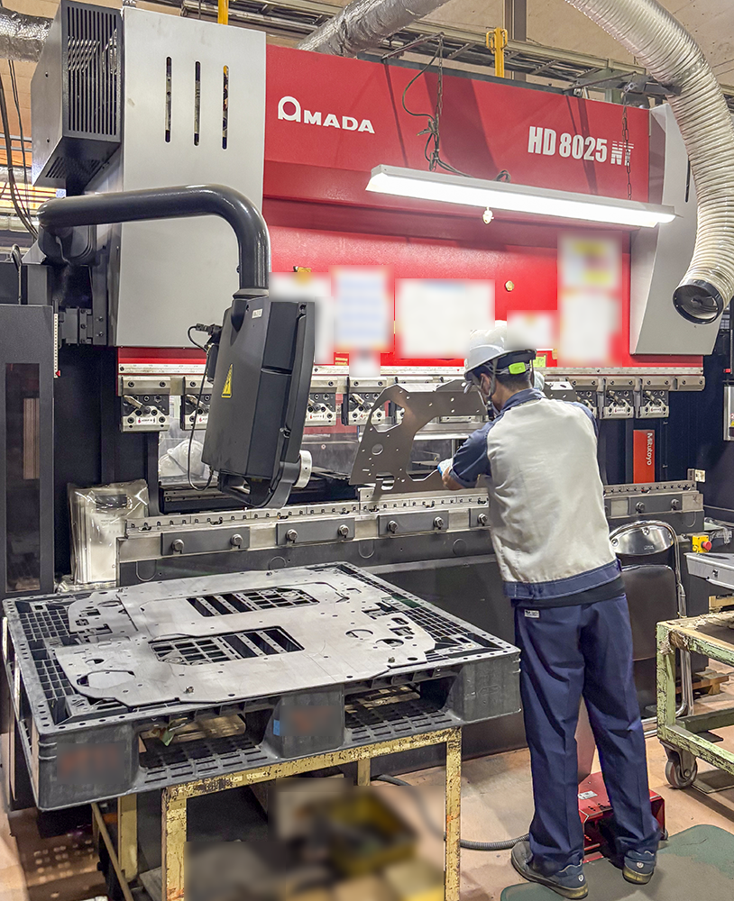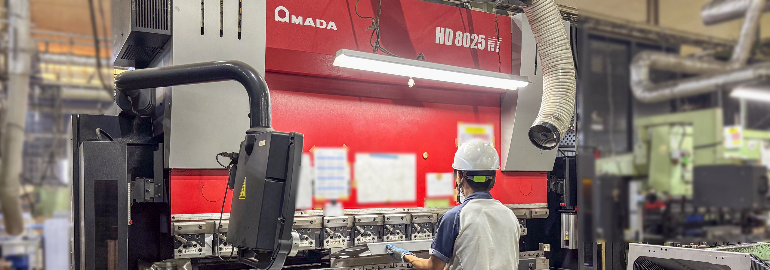 またブレーキプレスは長物にも対応し、数値制御による高精度の曲げ加工を実現することができます。